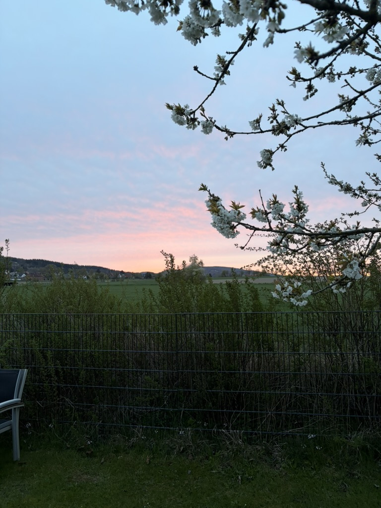 Der 12. April fiel auf einen Sonntag – ich hab beim Bäcker Brötchen geholt (hier wechselt die sonntägliche Frühstücksbesetzung manchmal, daher haben wir die seit etwa 15 Jahren bestehende automatische Lieferung mal abbestellt – die Lieblingsdorfbäckerei ist es eh nicht weit weg, und man kann gut mit dem Rad hin). Hund gefüttert, Hund gelüftet, dann kam Besuch und wir haben von Rom erzählt – danach gabs Spargel. Ein paar Telefonate ‚wie früher‘, also im Festnetz, dann Wäsche abgenommen, Hund erneut gefüttert, im Garten der untergehenden Sonne zugesehen, und schon wars dunkel. Ein schöner Sonntag.